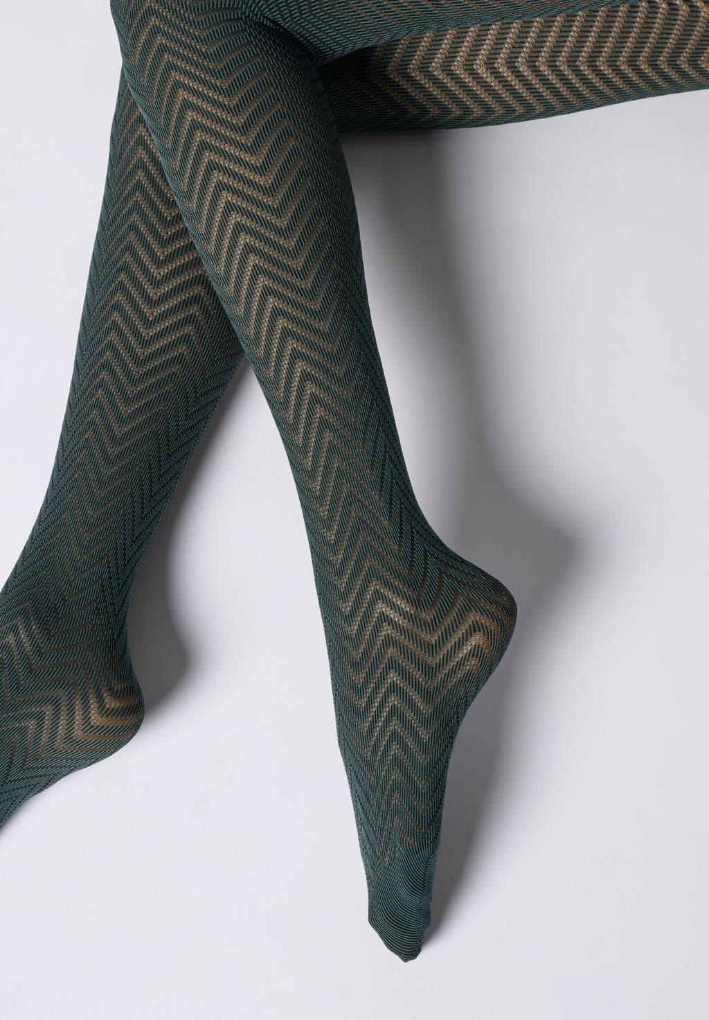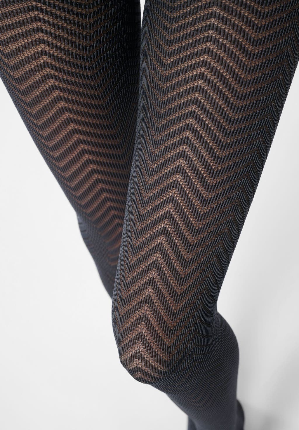 Semi-opaque tights with chevron pattern.